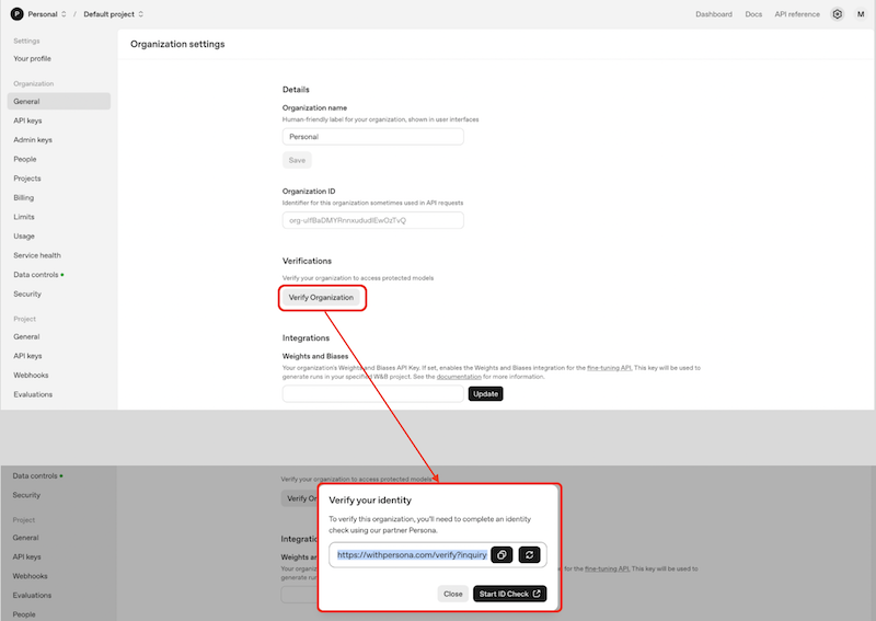 表示されたダイアログで「Start ID Check」( 本人確認を開始)をクリックします。